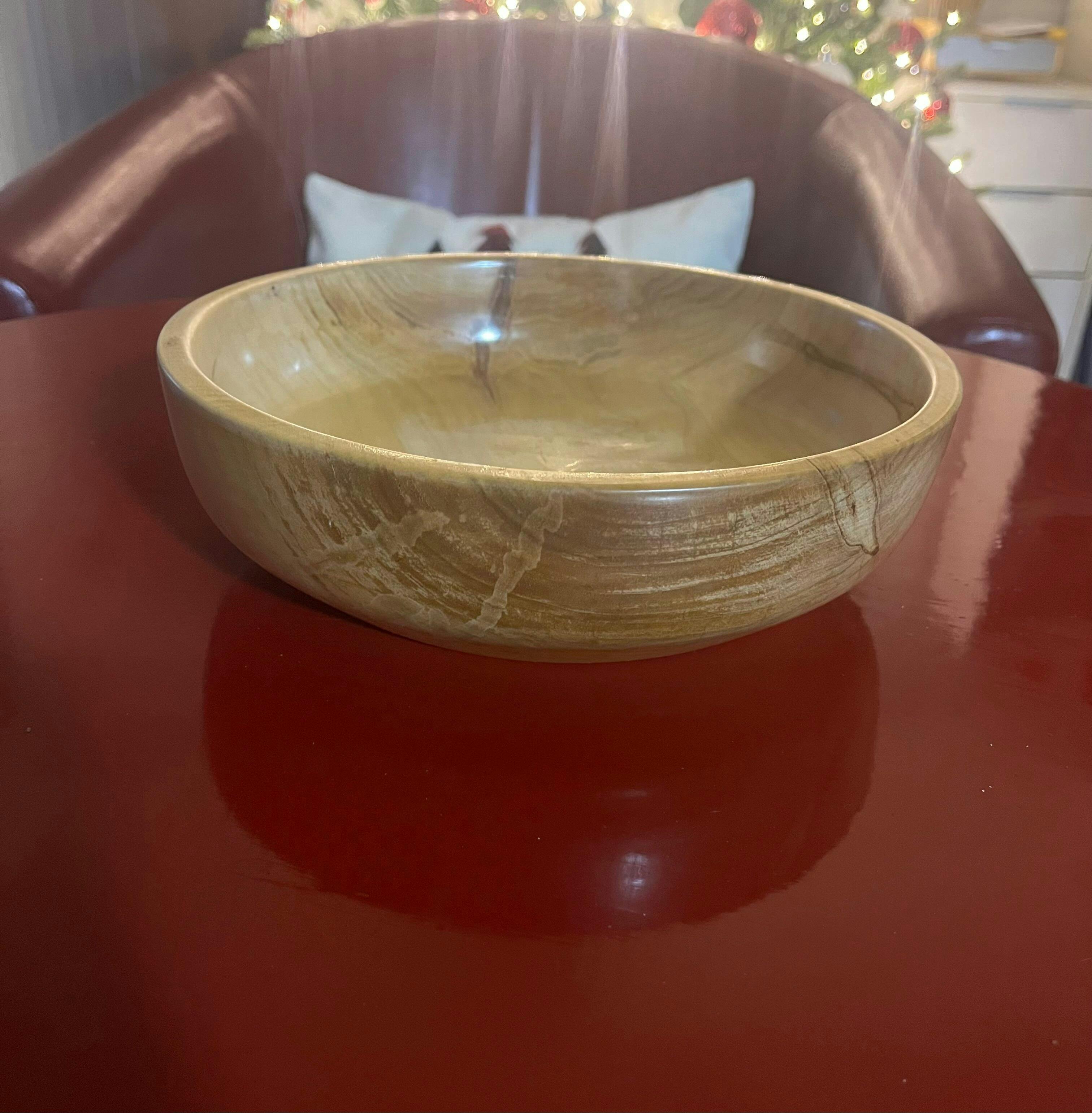 Crafted from natural Eastern White Pine, this bowl is a celebration of rustic beauty and timeless craftsmanship. Known for its striking grain patterns, occasional knots, and delightful natural aroma, Eastern White Pine ages gracefully to a warm tan hue, making each piece a unique work of art.